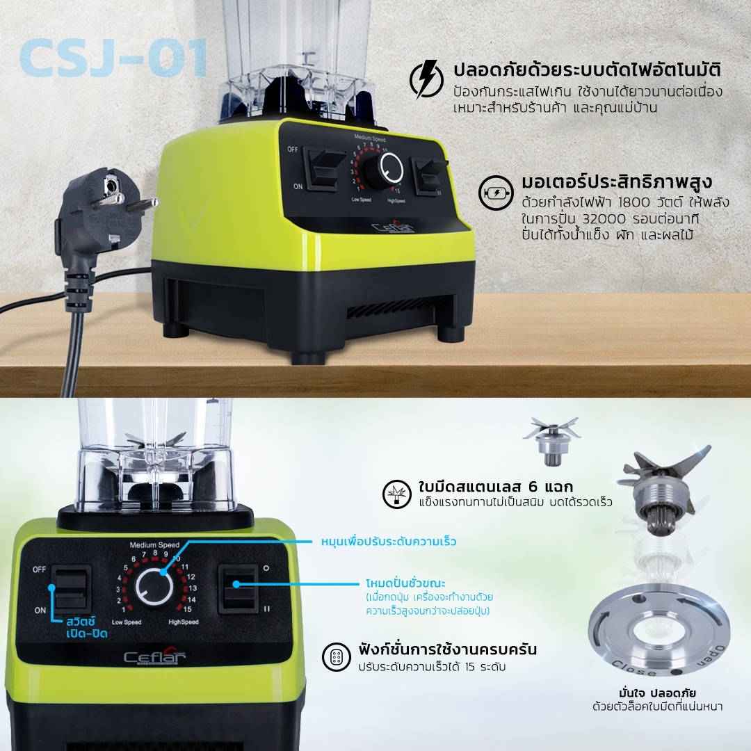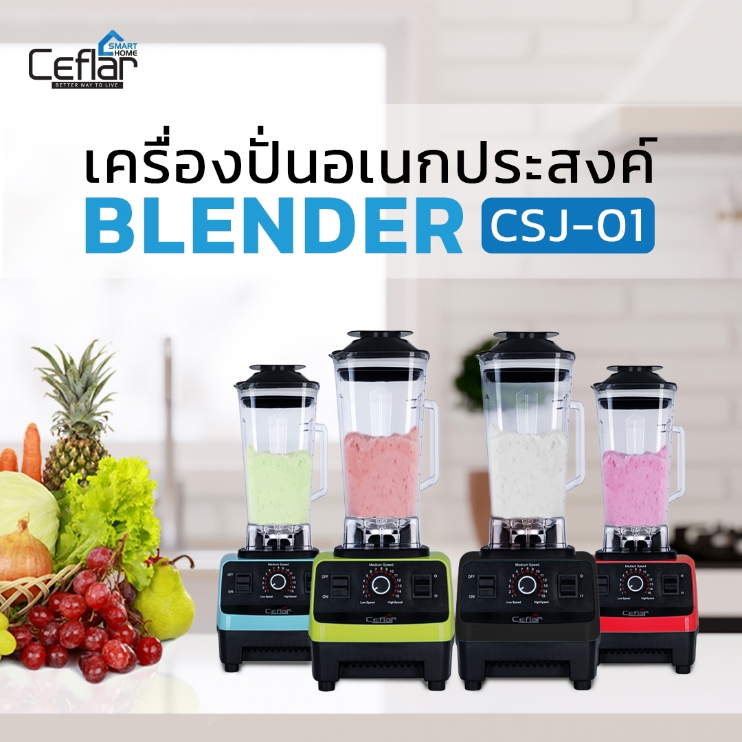 CEFLAR รุ่น CSJ-01 เครื่องปั่นเนกประสงค์ 2 ลิตร ใบมีดสแตนเลส ใช้ปั่นผลไม้ ผัก น้ำ ส่วนผสมต่าง ๆ