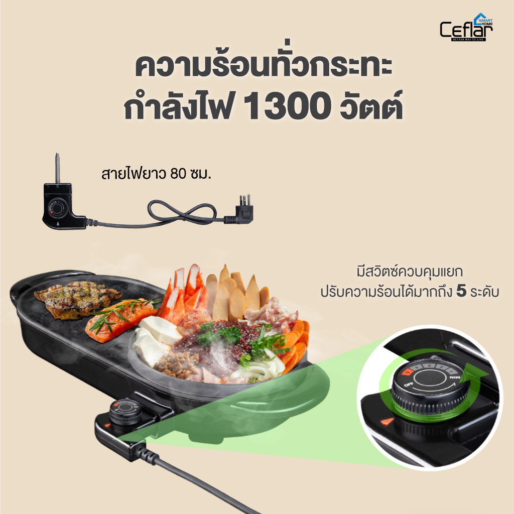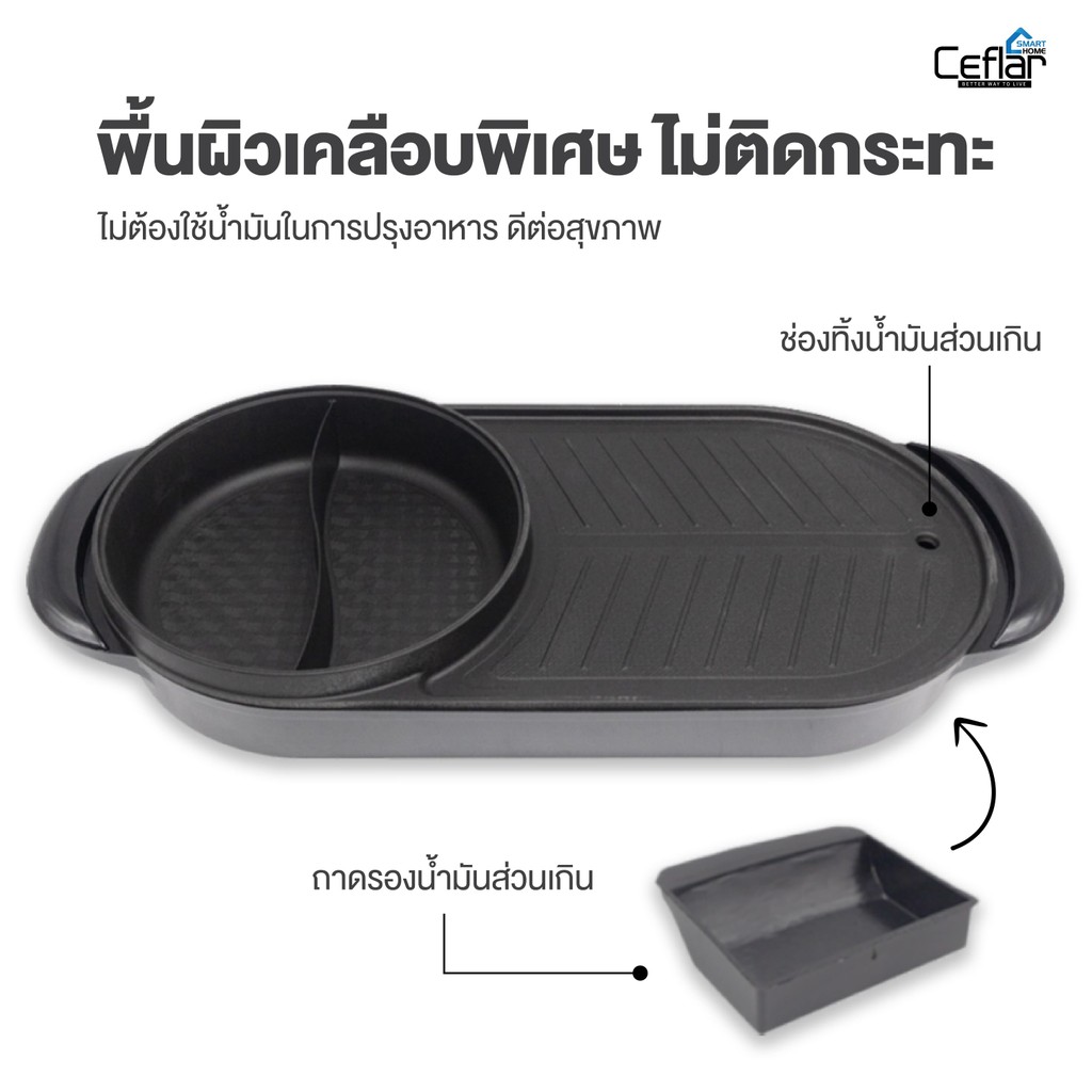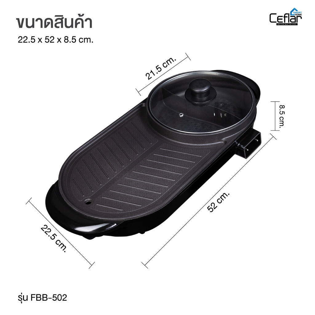 CEFLAR รุ่น FBB-502 เตาปิ้งย่าง พร้อมหม้อสุกี้ ร้อนเร็ว ประหยัดไฟ ใช้งานสะดวก ร้อนทั่วถึง
