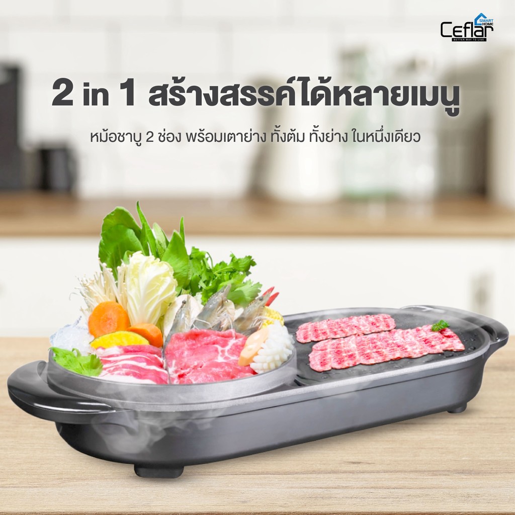 - สามารถทำปิ้งย่างบาร์บีคิวและชาบูได้ในเวลาเดียวกัน